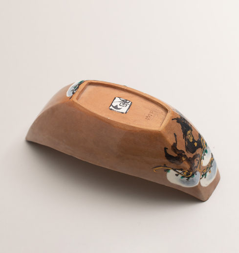 Set of 5 boat shaped dishes with snow-capped pine tree